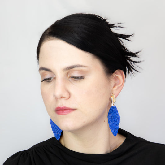 Cercei mari frunză exotică - Albastru