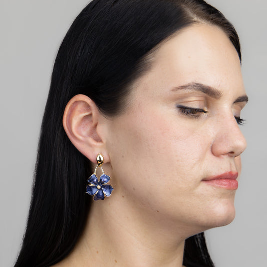 Cercei metalici flori elegante - Albastru