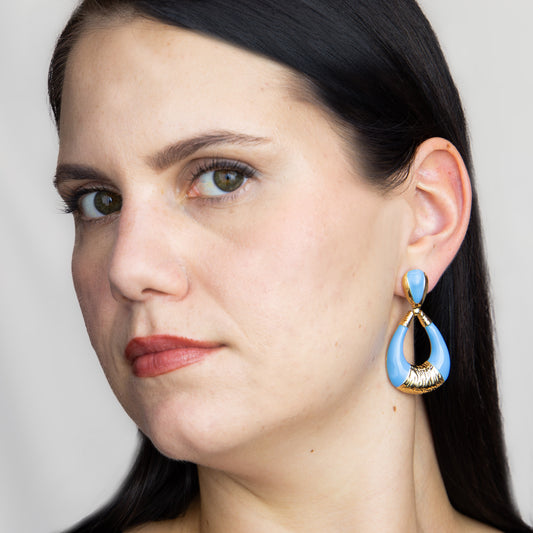 Cercei cu verigă ovală și accent color - Albastru Deschis
