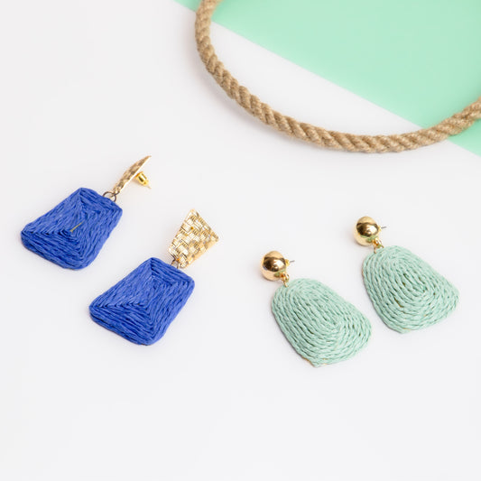 Cercei organic shapes din ratan, set 2 - Albastru, Turcoaz