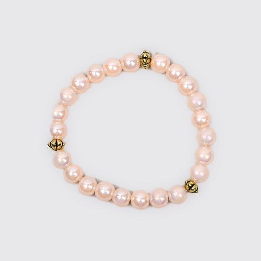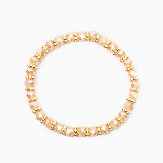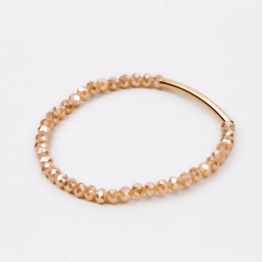 Brățară elastică cu mărgele și detalii aurii - Champagne
