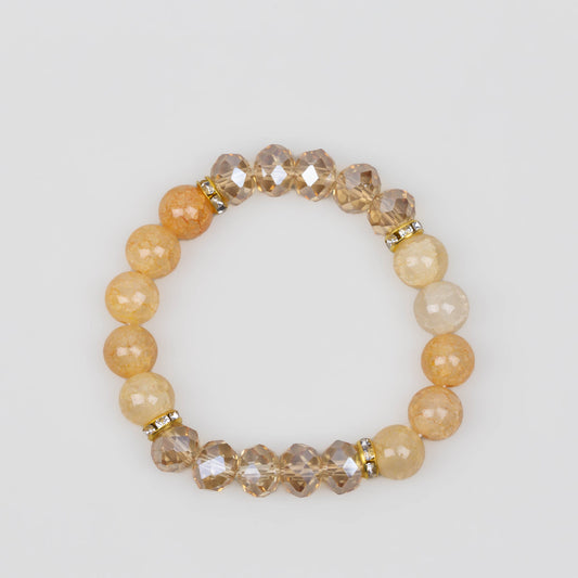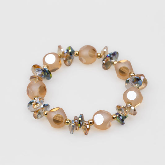 Brățară elastică cu mărgele marmorate și pietre - Champagne