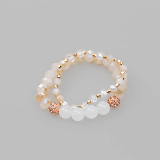 Brățări elastice cu mărgele, shamballa și pietre, set 2 buc - Bej