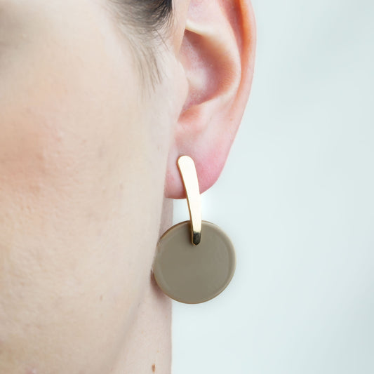 Cercei cu accent auriu și bănuț colorat - Bej