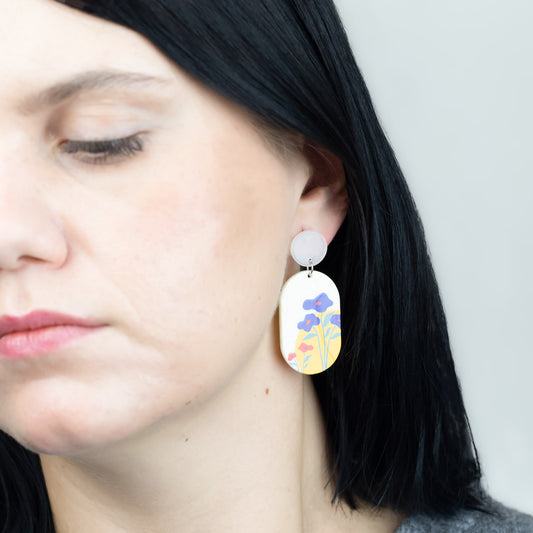 Cercei cu flori și accent galben, ușori și comozi