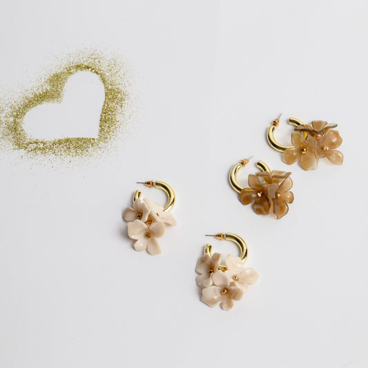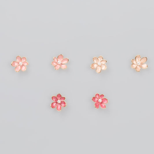 Cercei glossy flori suave cu perle, set 3 - Spring Mix