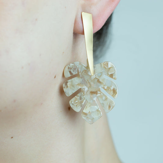 Cercei lungi cu frunză exotică și accent cromat - Bej