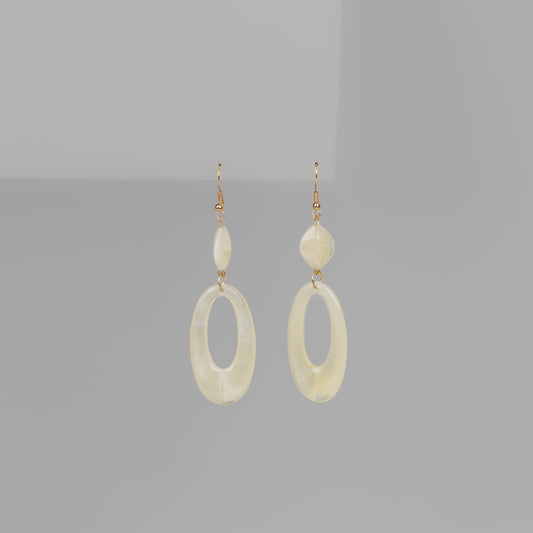 Cercei lungi ovali cu textură fină marmorată - Crem