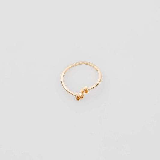 Inel reglabil auriu cu inimi și pietre galbene