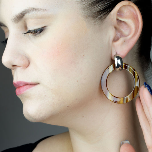 Cercei rotunzi cu cercuri efect caramelizat - Maro
