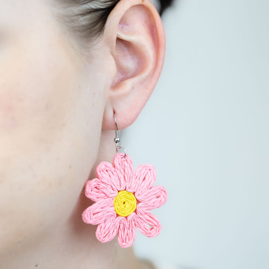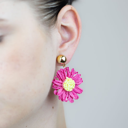 Cercei din ratan în formă de gerbera cu accent auriu - Magenta