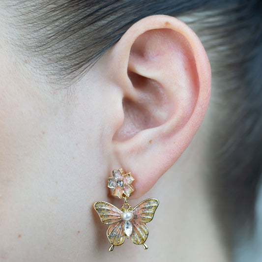 Cercei eleganți fluture efervescent cu efect sclipitor