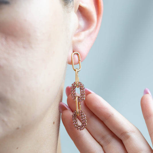 Cercei lungi city break cu frunze geometrice siliconate - Magenta Pudră
