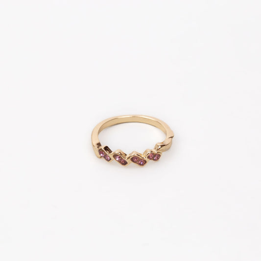 Inel auriu cu forme de zig-zag și ștrasuri roz