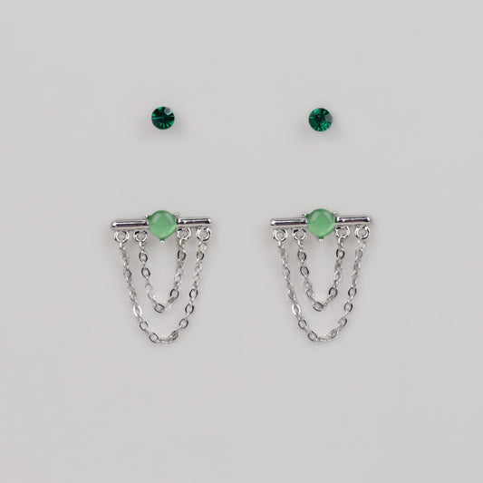 Cercei argintii cu lănțișor, piatră și accent color, set 2 perechi - Verde
