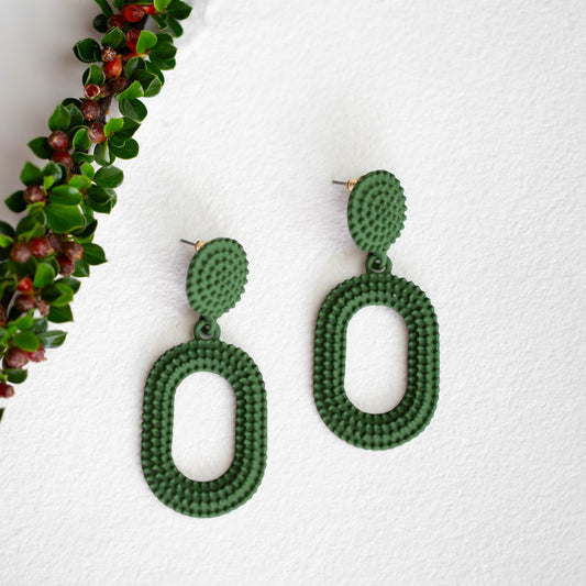 Cercei texturați cu verigă ovală - Verde