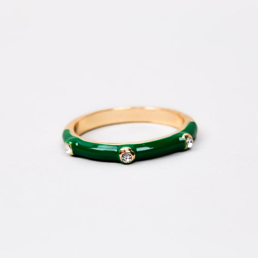 Inel auriu cu ștrasuri și accent color - Verde