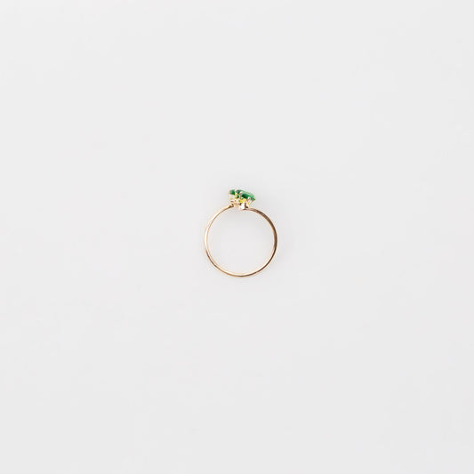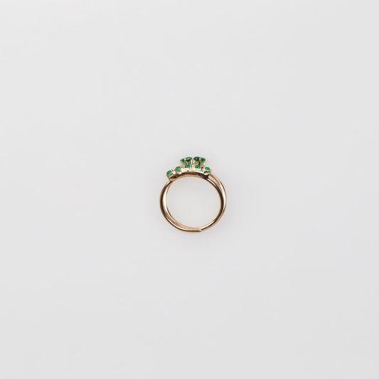 Inel auriu spiralat cu pietre verzi