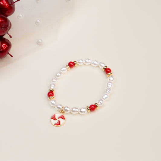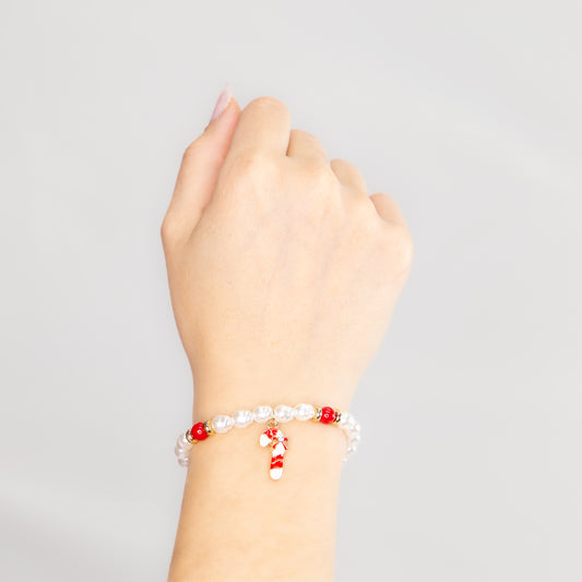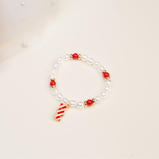 Brățară elastică cu motive de Crăciun Candyland - Roșu, Alb