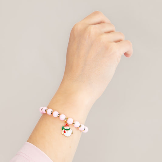 Brățară elastică cu motive de Crăciun Frosty Charm - Roz
