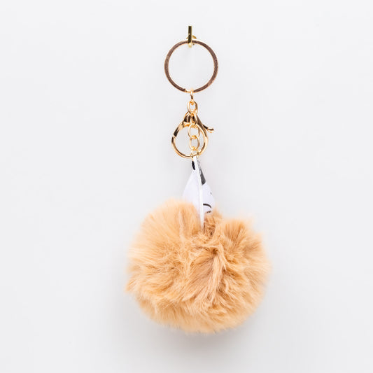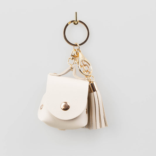 Breloc chei cu 1 compartiment cu capsă și ciucuri - Bej