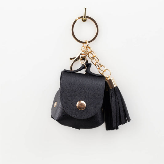 Breloc chei cu 1 compartiment cu capsă și ciucuri - Negru