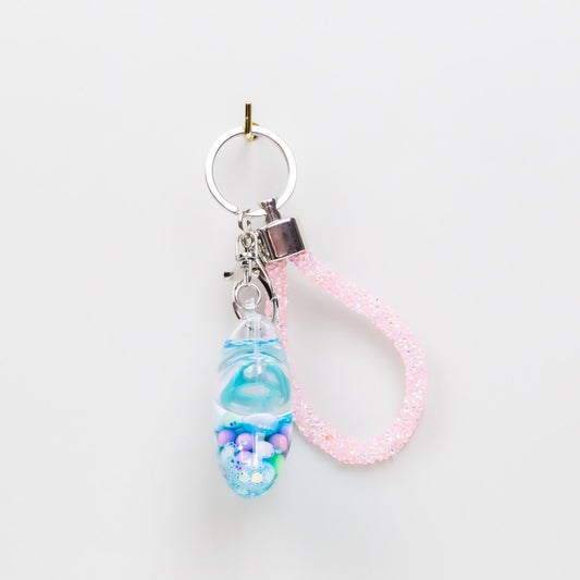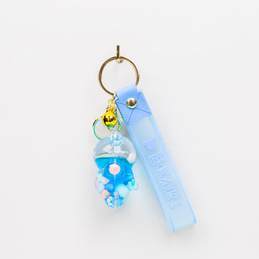 Breloc chei translucid în formă de ursuleț cu lichid și confetti - Albastru