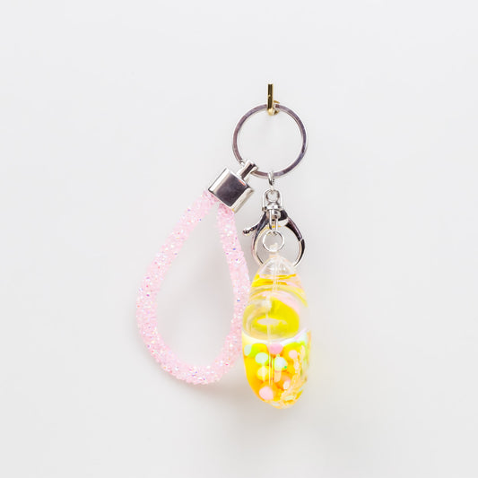 Breloc chei translucid în formă de ursuleț cu lichid și confetti - Galben