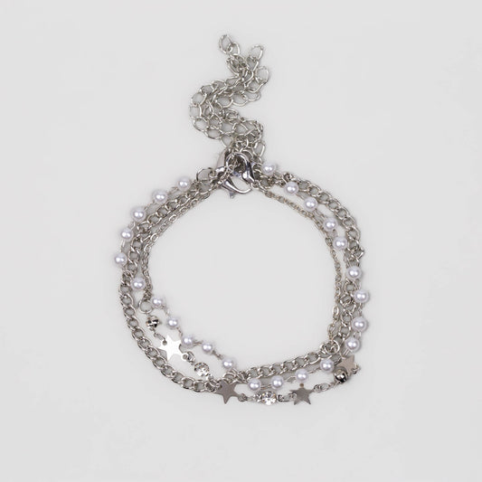 Brățări reglabile cu lanț, biluțe și stele, set 3 buc - Argintiu