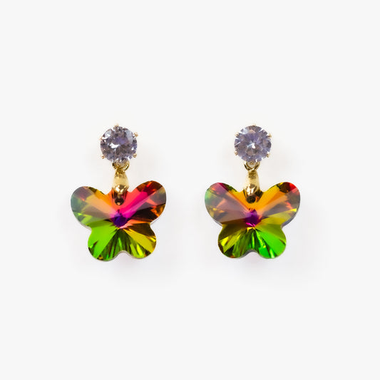 Cercei cu piatră strălucitoare în formă de fluture - Mov, Verde