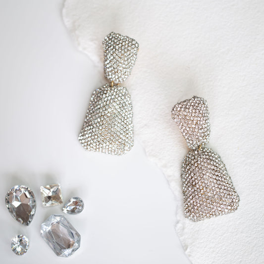 Cercei mari eleganți cu ștrasuri - Argintiu