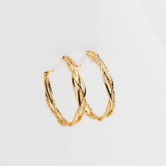 Cercei rotunzi împletiți cu textură crestată - Auriu