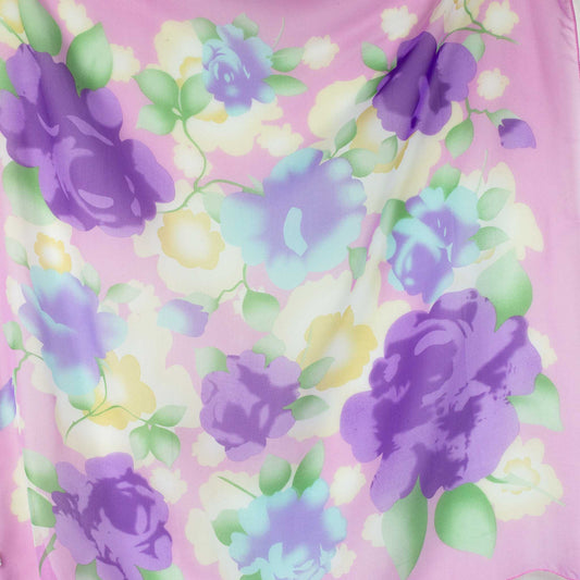 Eșarfă fină cu efect de mătase, imprimeu floral, aspect pictat, 65 x 65 cm - Roz, Mov