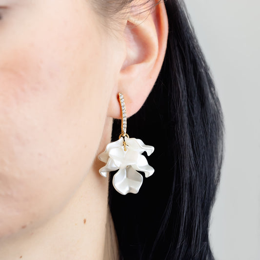Cercei cu petale albe și ștrasuri