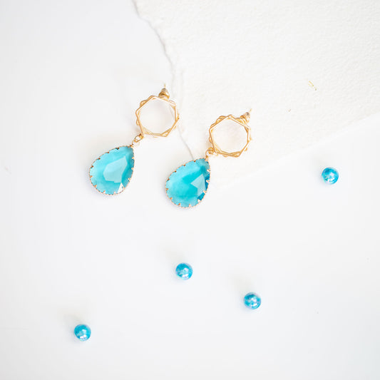 Cercei atlantis cu accent geometric auriu și piatră mare - Turcoaz