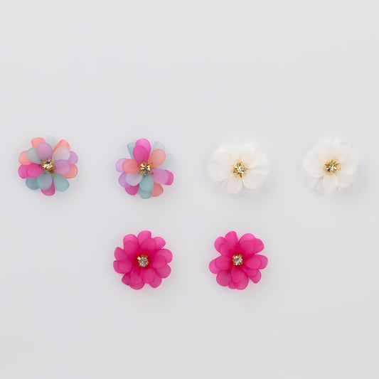 Cercei flori vibrante cu piatră, set 3 - Multicolor