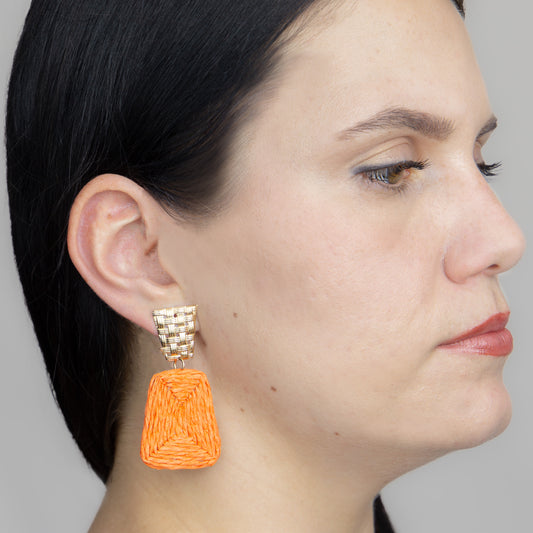 Cercei organic shapes din ratan, set 2 - Roz, Portocaliu