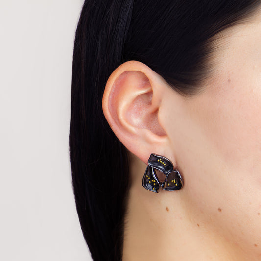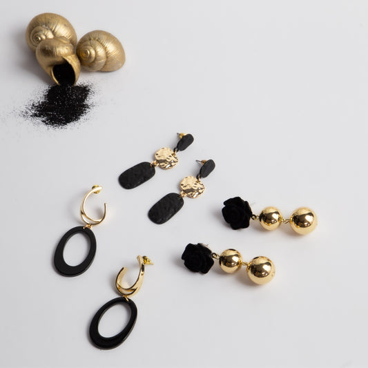 Cercei romantic mix cu biluțe, flori și textură de silicon, set 3 - Auriu, Negru