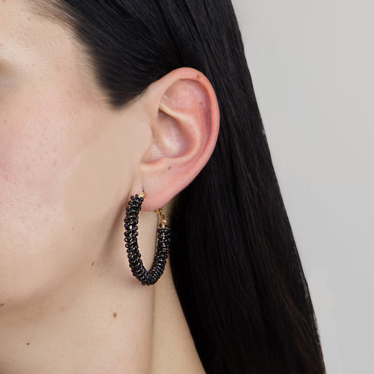 Cercei rotunzi aurii, cu mărgele mici spiralate - Negru