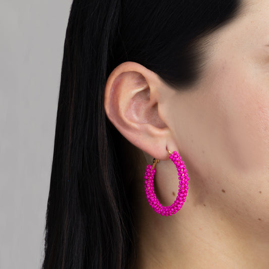 Cercei rotunzi aurii cu mărgele mici spiralate - Roz