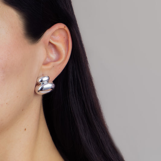 Cercei textured duo cu textruă siliconată, set 2 - Alb