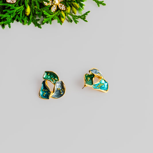 Cercei rotunzi aurii cu mărgele mici spiralate - Verde