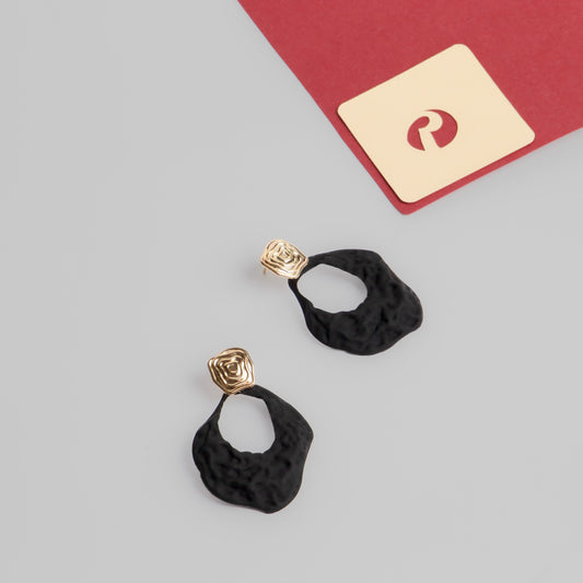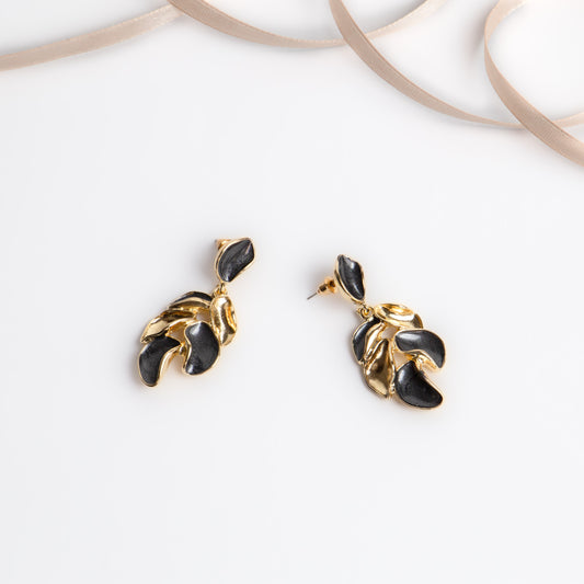 Cercei metalici în forma de frunză cu pietre, set 2 - Negru