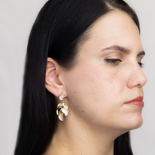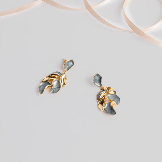 Cercei metalici în forma de frunză cu pietre, set 2 - Auriu