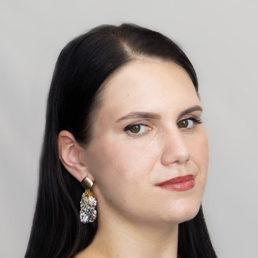 Cercei metalici în forma de frunză cu pietre, set 2 - Argintiu