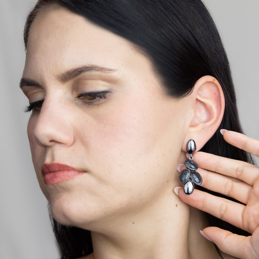 Cercei lungi cu biluțe berry drop, set 2 - Argintiu