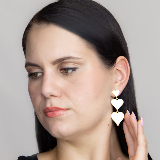 Cercei frunze lucioase, set 2 - Alb, Maro