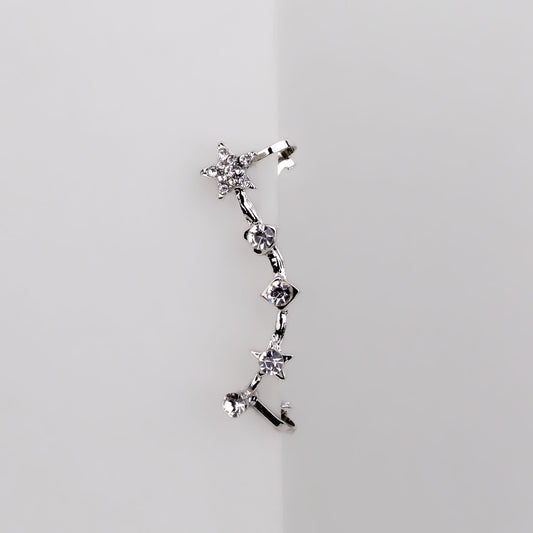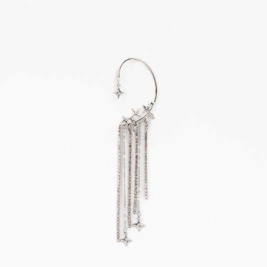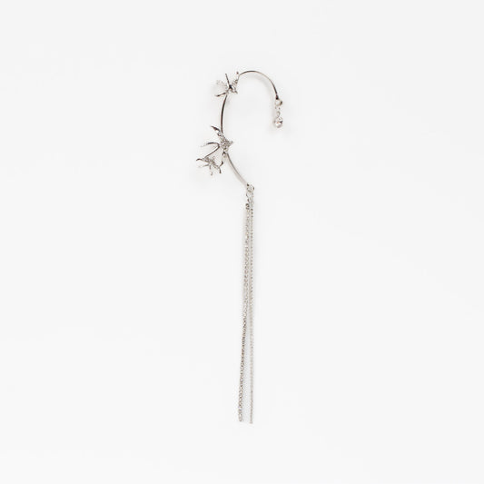 Cercel ear cuff cu lanțuri fine și stele strălucitoare - Argintiu cosmic