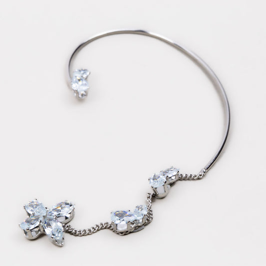 Cercel ear cuff cu lanț delicat și pietre - Argintiu magic