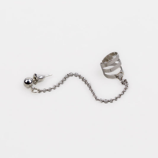 Cercel ear cuff cu lănțișor și cercel cu biluță - Argintiu